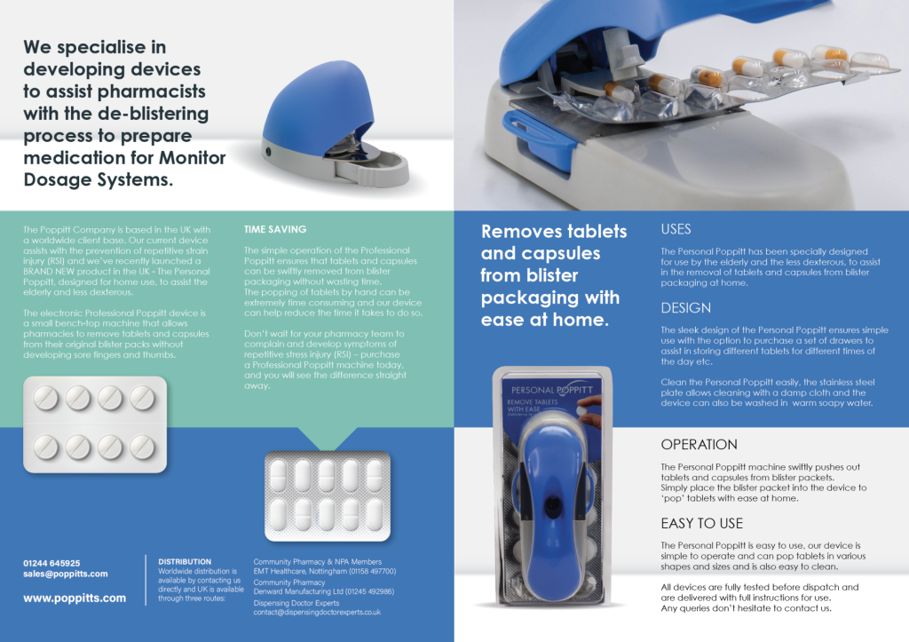 Le POPPITT est une solution innovante dédiée au déblistérage des formes sèches (comprimés et gélules). Il permet d’automatiser une tâche répétitive tout en garantissant précision, sécurité et gain de temps. Adapté aux environnements hospitaliers et officinaux, il répond aux exigences modernes de performance et de traçabilité.